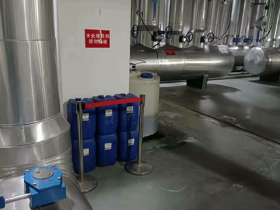 数据中心机房冷水机组空调水处理,水处理药剂分批就位。